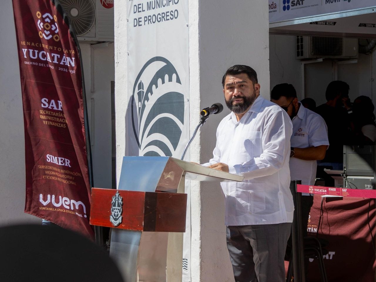 Durante la inauguración, realizada en los bajos del Palacio Municipal, el secretario de Administración y Finanzas, Juan Sánchez Álvarez, en representación del Gobernador Joaquín Díaz Mena, explicó que el regreso de la Ventanilla Única Estatal Móvil a Progreso va más allá de la atención de procesos burocráticos, pues significa acercarse a la ciudadanía, escuchar a los alcaldes y coordinar instituciones.