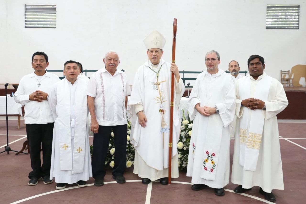 Doce personas privadas de la libertad del Centro de Reinserción Social de Mérida (Cereso) representaron a los apóstoles de Jesús durante la ceremonia del lavatorio de pies, encabezada por el arzobispo de Yucatán, Gustavo Rodríguez Vega.