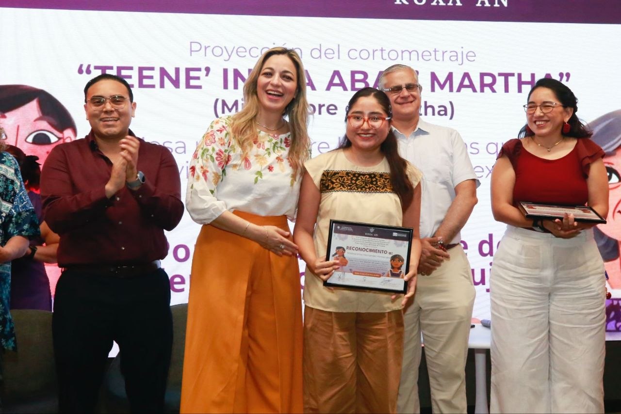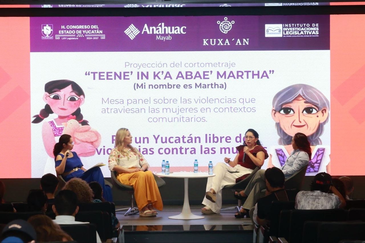 Con el objetivo de visibilizar ante el sector universitario la violencia que enfrentan las mujeres en sus comunidades, y volverse actores de cambio para combatirla, el Congreso del Estado mediante el Instituto de Investigaciones Legislativas y la Comunidad Biocultural Kuxa´an presentaron esta mañana el cortometraje animado “Teene’ in K’a abae’ Martha” (Mi nombre es Martha) en la Universidad Anáhuac Mayab.