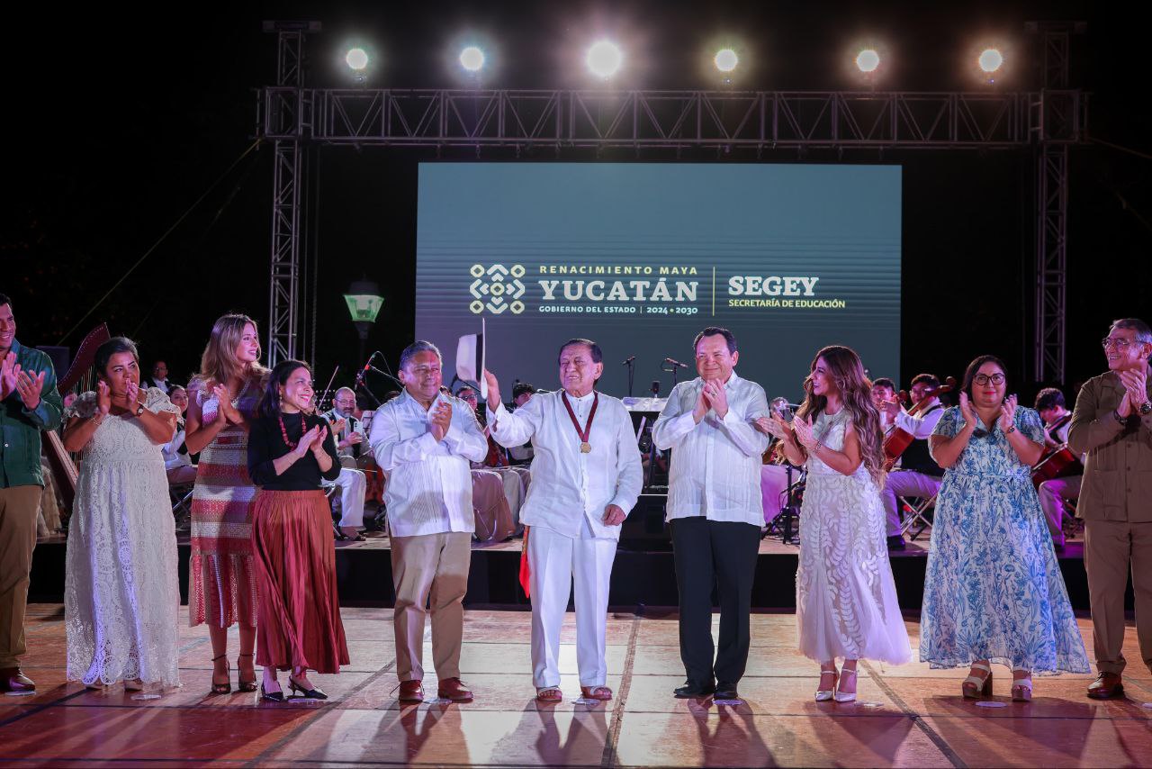 Durante la ceremonia, el mandatario estatal entregó la Medalla Bellas Artes 2026 al maestro Tomás Simón Cortés Canto, en reconocimiento a su destacada trayectoria en la formación artística de generaciones de yucatecas y yucatecos y a toda una vida dedicada a la promoción de la danza y la cultura.