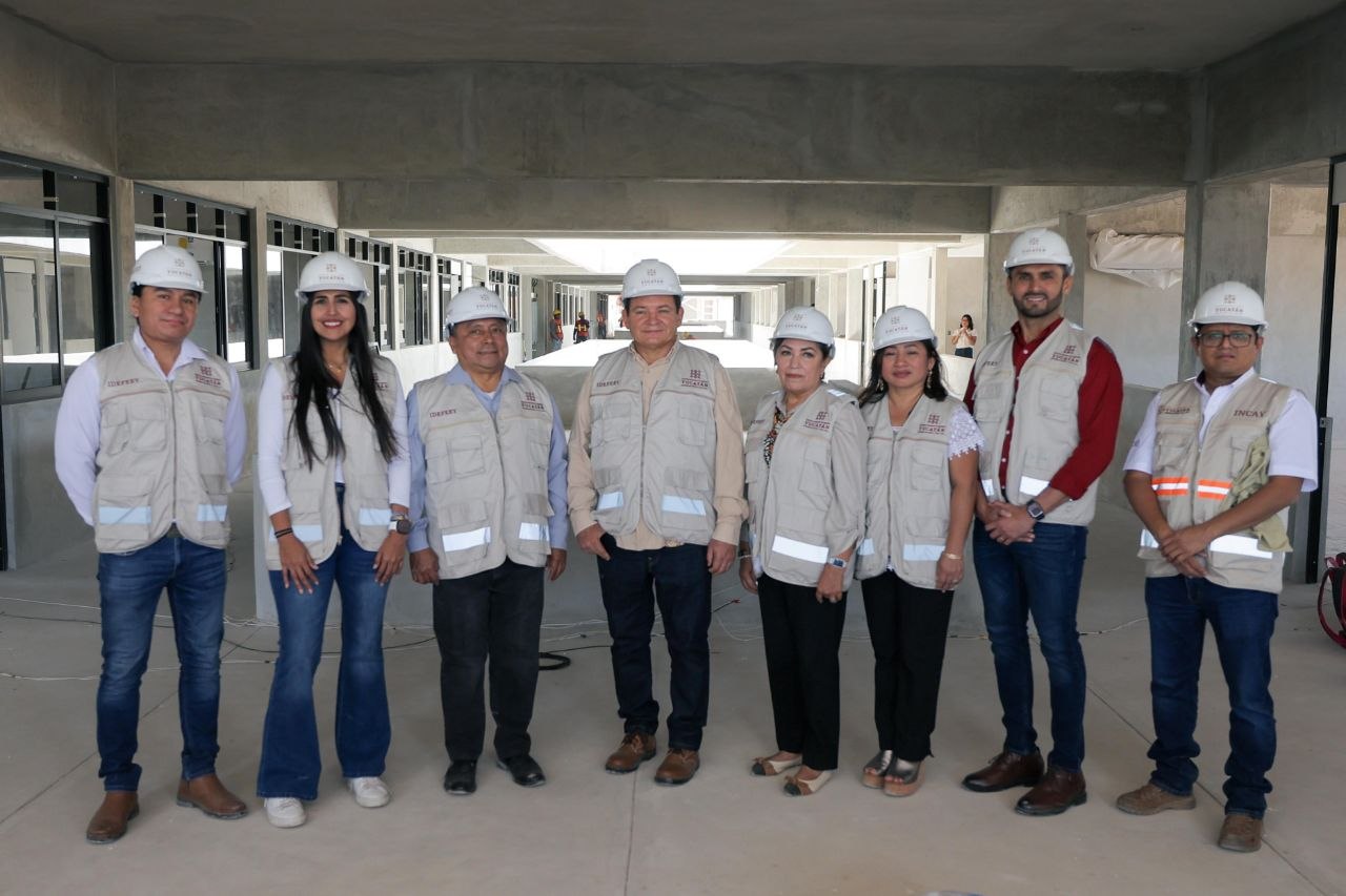 Durante el recorrido, Díaz Mena constató el avance de esta obra, que permitirá ofrecer 10 licenciaturas e ingenierías vinculadas con las necesidades del mercado laboral yucateco y con el crecimiento de sectores estratégicos impulsados por los proyectos del Renacimiento Maya, entre ellos los parques industriales, la modernización del Puerto de Altura de Progreso y el Tren Maya de carga.