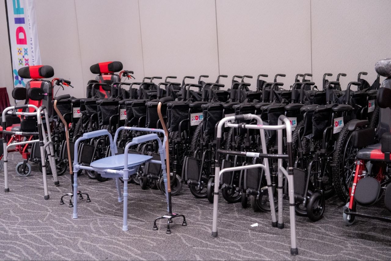 A través del DIF Yucatán se entregaron 83 aparatos funcionales, entre ellos sillas de ruedas, andaderas, sillas cómodo, sillas para personas con Parálisis Cerebral Infantil (PCI), bastones de apoyo, andaderas rollator, sillas de ruedas infantiles y asiento posicionador; además de cuatro triciclos y 22 aparatos protésicos y ortésicos.