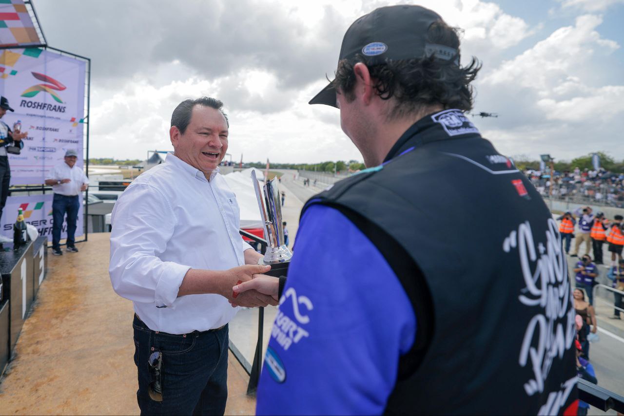 El Gobernador Joaquín Díaz Mena encabezó la ceremonia de premiación de la Súper Copa Roshfrans, evento automovilístico que reúne competencias de Fórmula 5, Gran Turismo, motocicletas y tractocamiones, y ofrece al público una experiencia de velocidad y adrenalina.