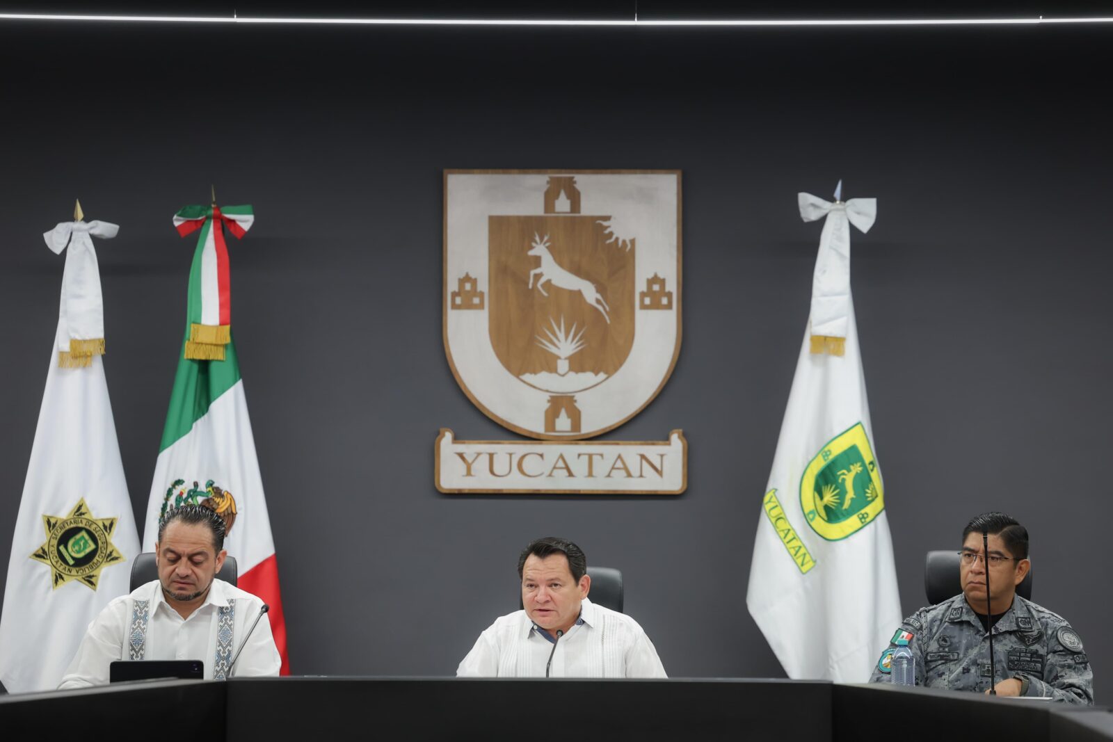 Desde las instalaciones del Centro de Control, Comando, Comunicaciones, Cómputo, Coordinación e Inteligencia (C5i), el Gobernador reconoció el trabajo de la Secretaría de Seguridad Pública (SSP), así como la presencia y respaldo permanente de las Secretarías de la Defensa Nacional, de Marina, la Guardia Nacional en Yucatán, la Fiscalía General de la República y otras instancias que colaboran para mantener la seguridad en el estado.