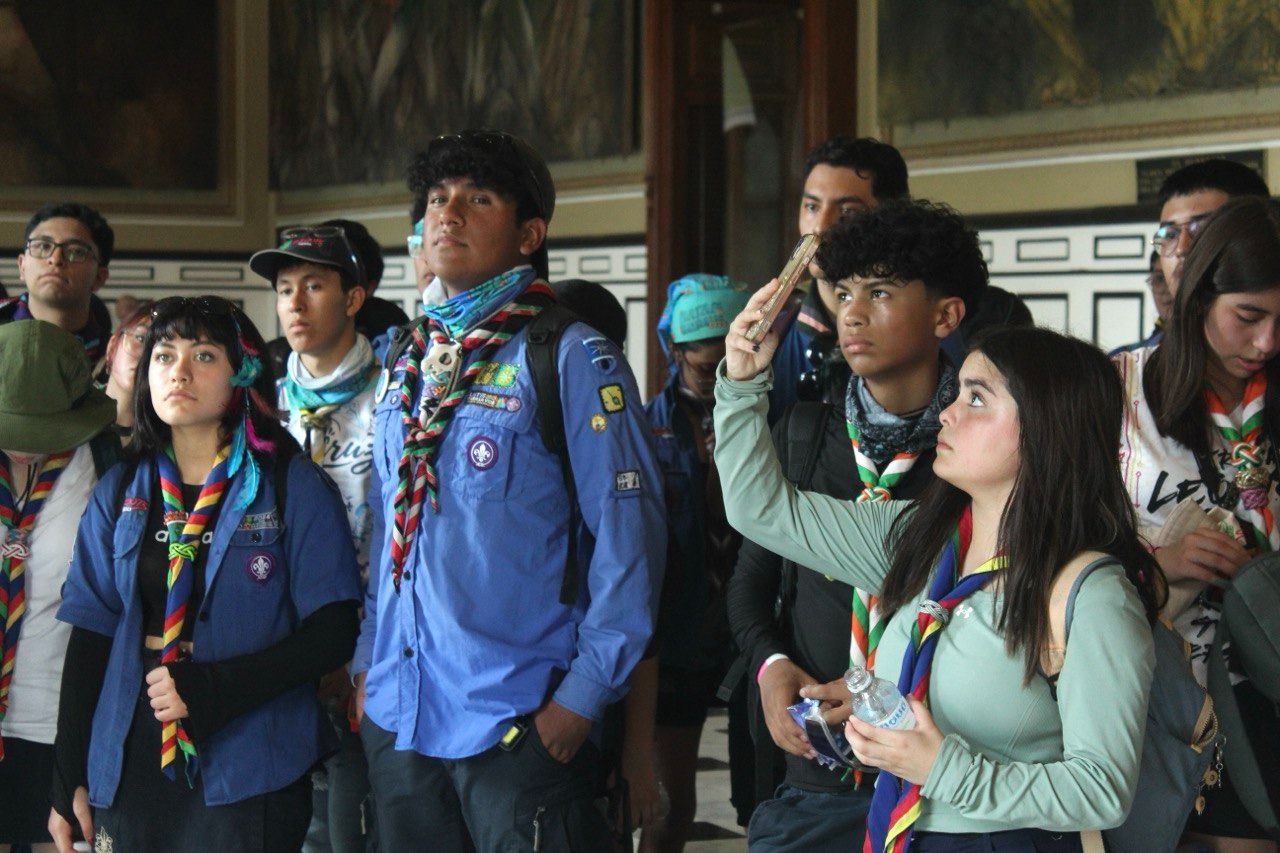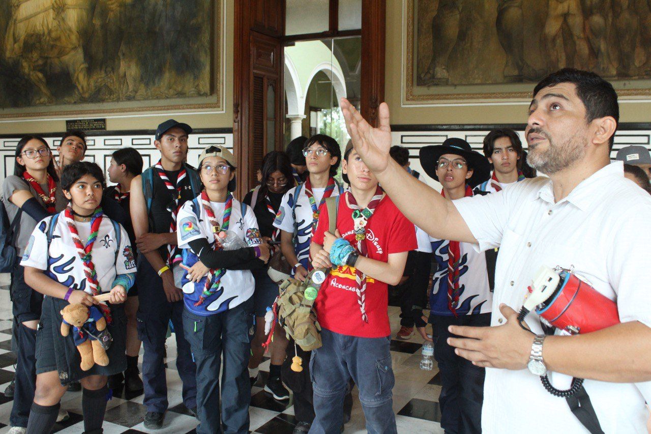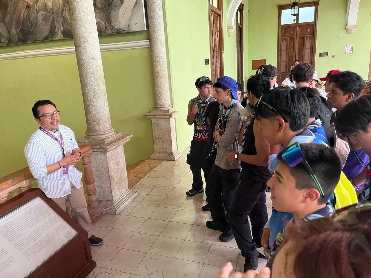 La Secretaría de la Cultura y las Artes (Sedeculta) acompañó a más de 600 niñas, niños y adolescentes de la Asociación de Scouts de México —provenientes de Puebla, Jalisco, Estado de México, Michoacán, Ciudad de México, entre otras entidades— durante un recorrido por el Palacio de Gobierno, sede del Poder Ejecutivo estatal, como parte de las actividades educativas y culturales del encuentro nacional escultista Mayamboree 2025, que se celebra en Yucatán.
