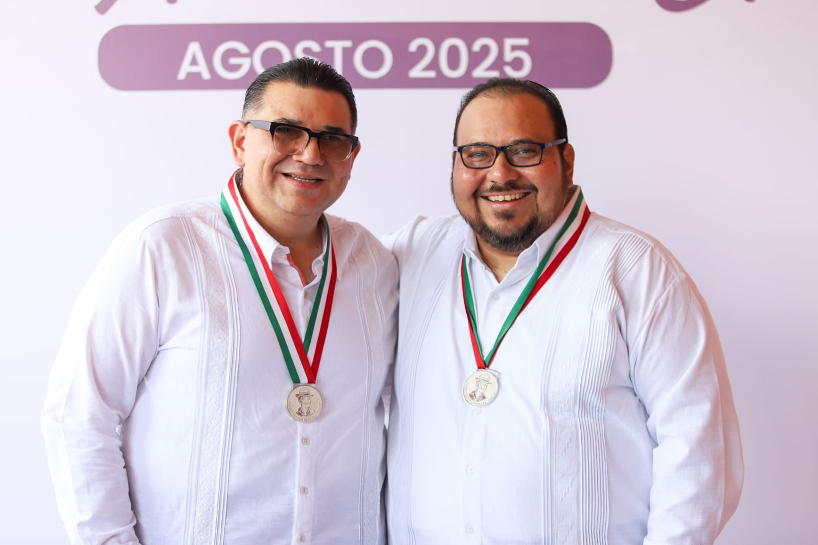 Mérida, Yucatán a martes 12 de agosto de 2025.- En sesión solemne, el Cabildo de Mérida reconoció el talento y legado artístico de Mario Herrera Casares y Daniel Herrera Casares, mejor conocidos como “Dzereco y Nohoch”, con la entrega de la medalla Hector Herrera “Cholo” 2025, por su trayectoria y promoción de la identidad cultural que nos distingue.