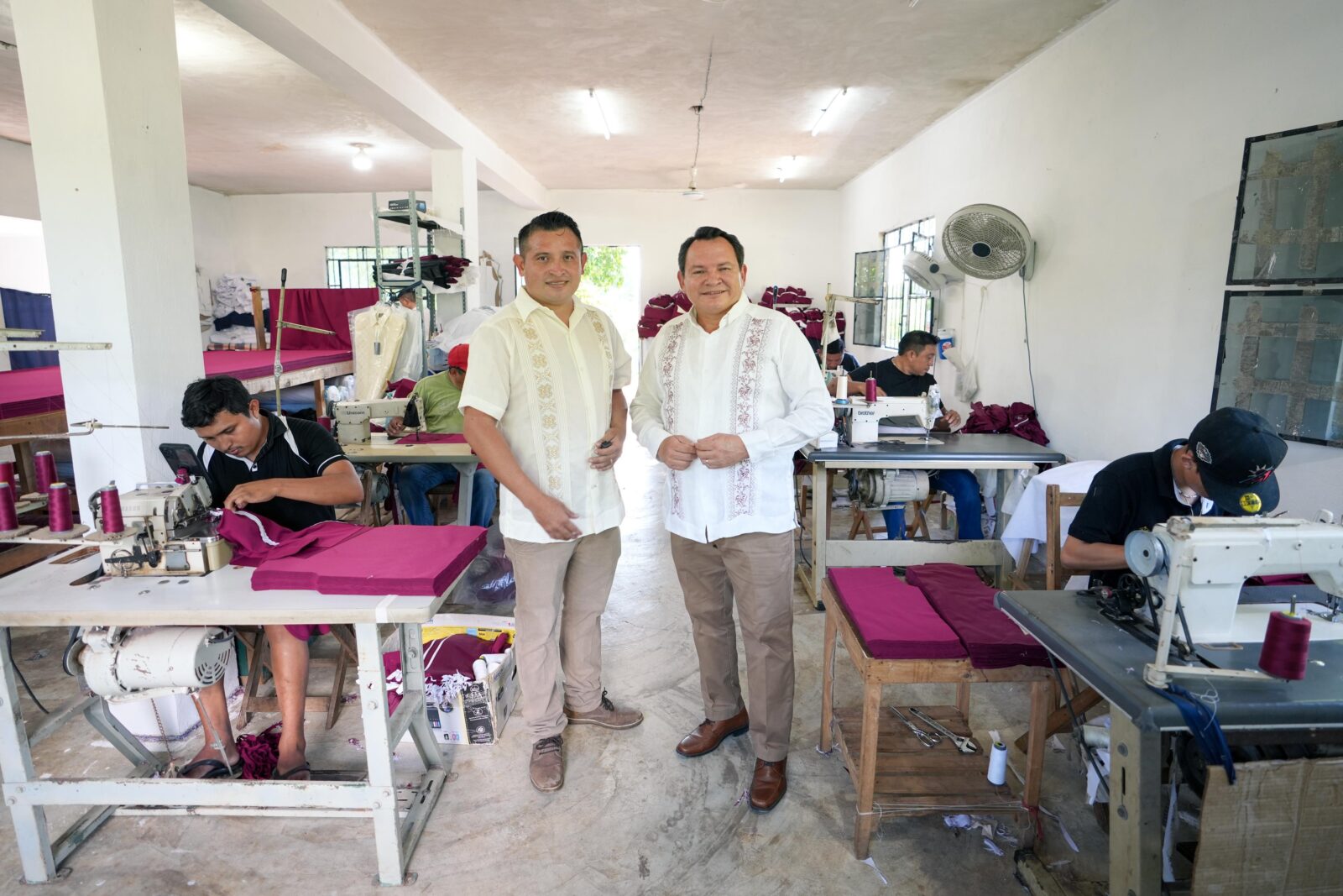 Uno de los beneficiarios es Melchor Emanuel Uicab Cetina, dueño de una fábrica de guayaberas en Tekit, que produce 4,200 chamarras y 8,500 camisas para estudiantes de nivel básico.