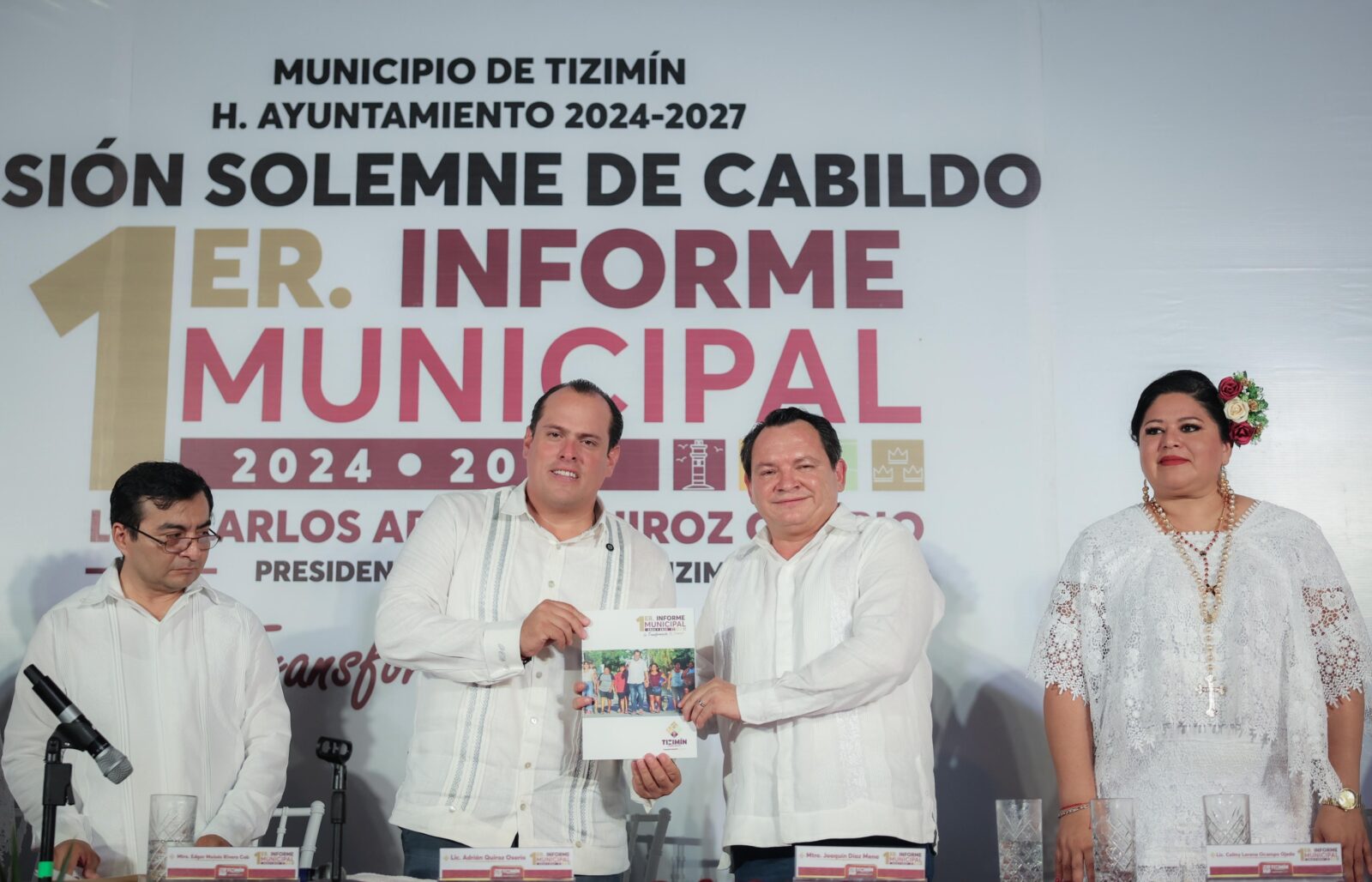 El Gobernador Joaquín Díaz Mena ratificó el trabajo coordinado con el Ayuntamiento de Tizimín para impulsar obras y acciones en beneficio de las familias, durante el primer informe de gobierno del alcalde Adrián Quiroz Osorio.