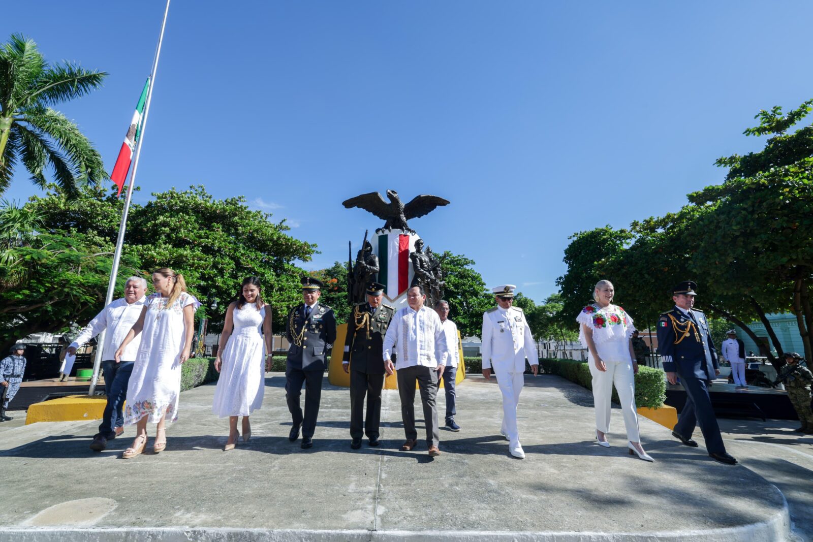 _Autoridades civiles y militares, junto al Gobernador Joaquín Díaz Mena, participaron en la ceremonia en honor a los cadetes caídos en Chapultepec, reafirmando principios de lealtad, justicia y soberanía para México y Yucatán._