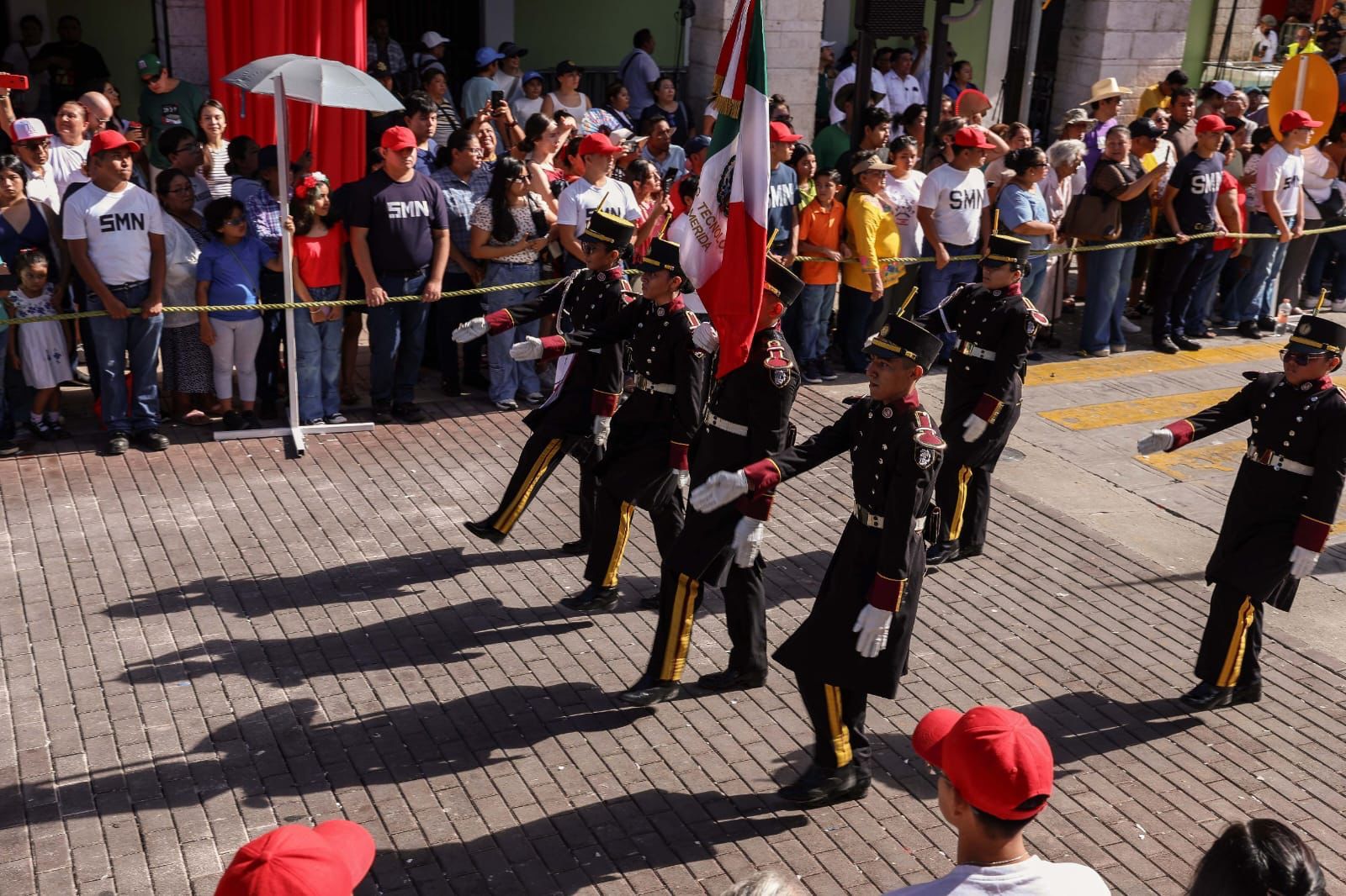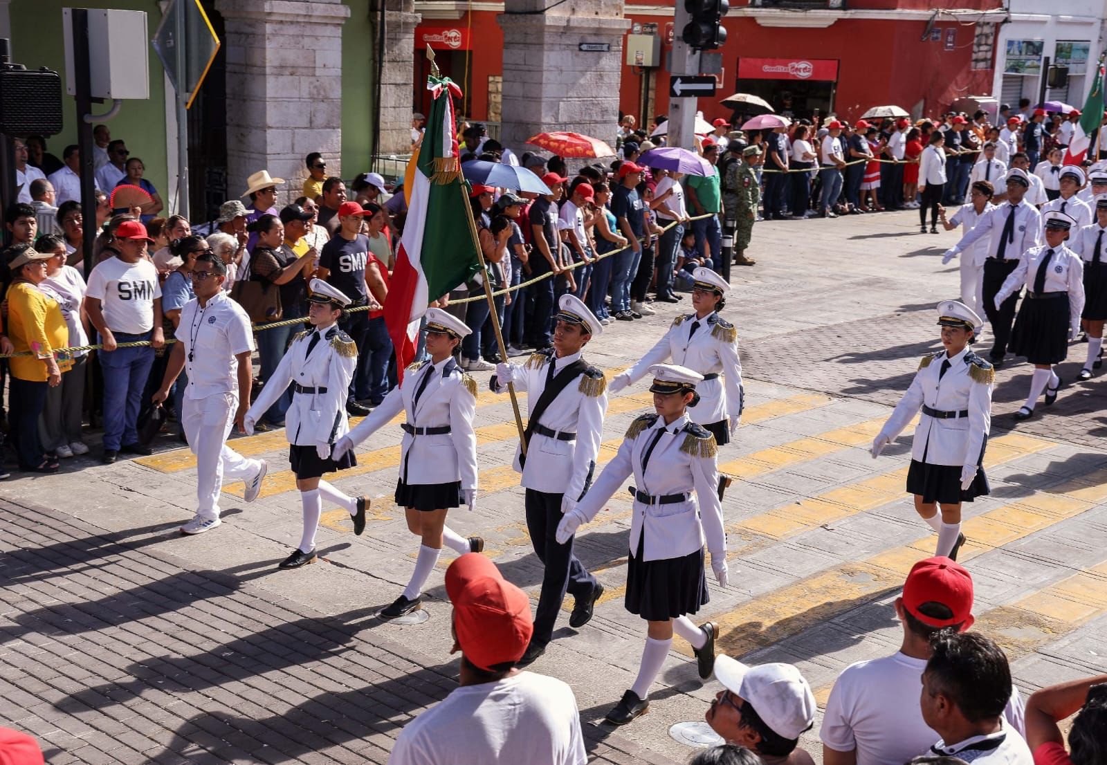 Con la participación de 2,741 estudiantes de 47 planteles de secundaria, bachillerato y nivel superior, se realizó el desfile cívico-militar conmemorativo por el 215º Aniversario del Inicio de la Independencia de México, el cual comenzó con el izamiento de la Bandera en la Plaza Grande de Mérida.