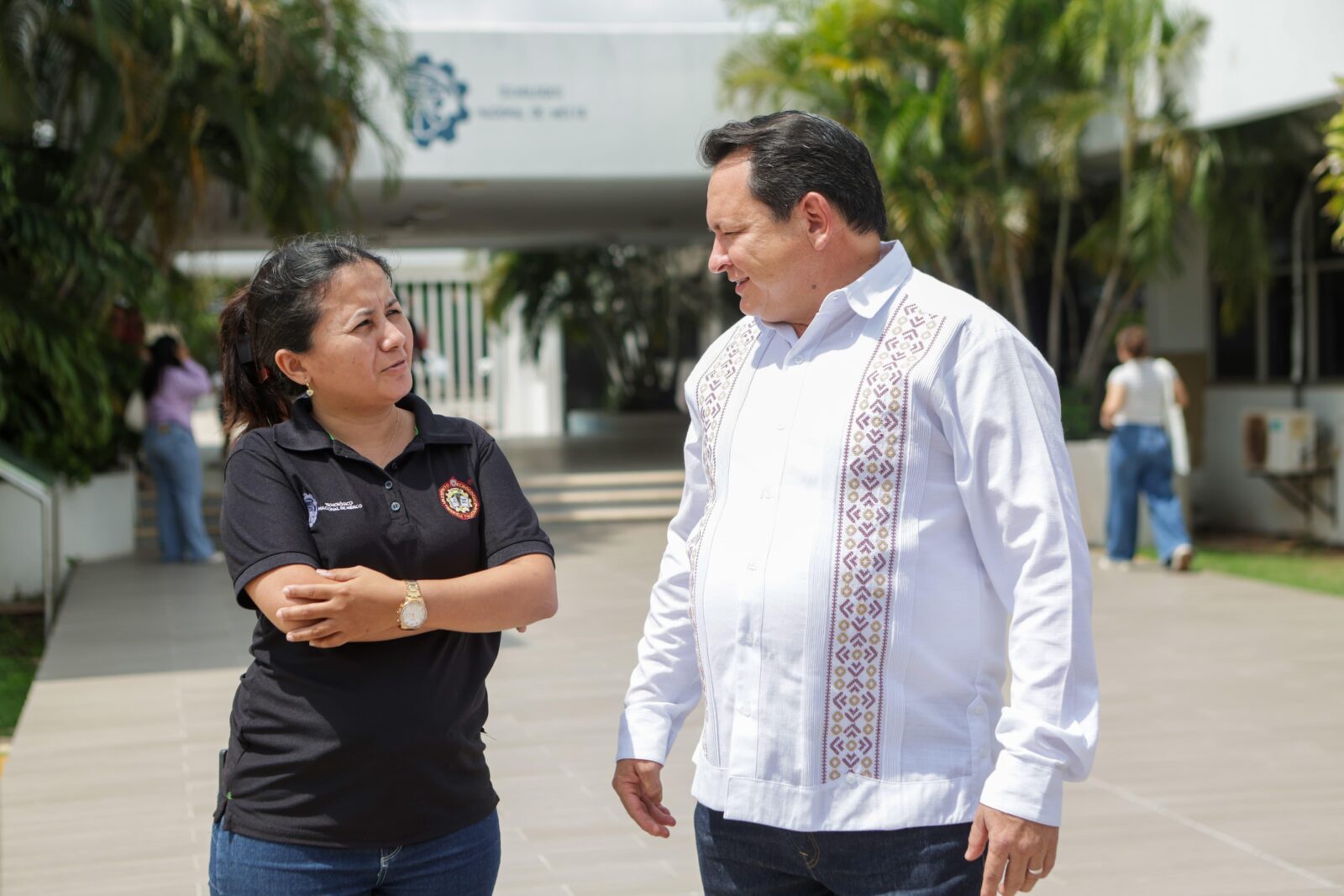 Acompañaron al Gobernador en el recorrido la secretaria y subsecretaria del Bienestar, Fátima Perera Salazar y Adela Escamilla Acevedo, respectivamente, así como la subdirectora del Tecnológico de Mérida, Guillermina Peña Padilla.