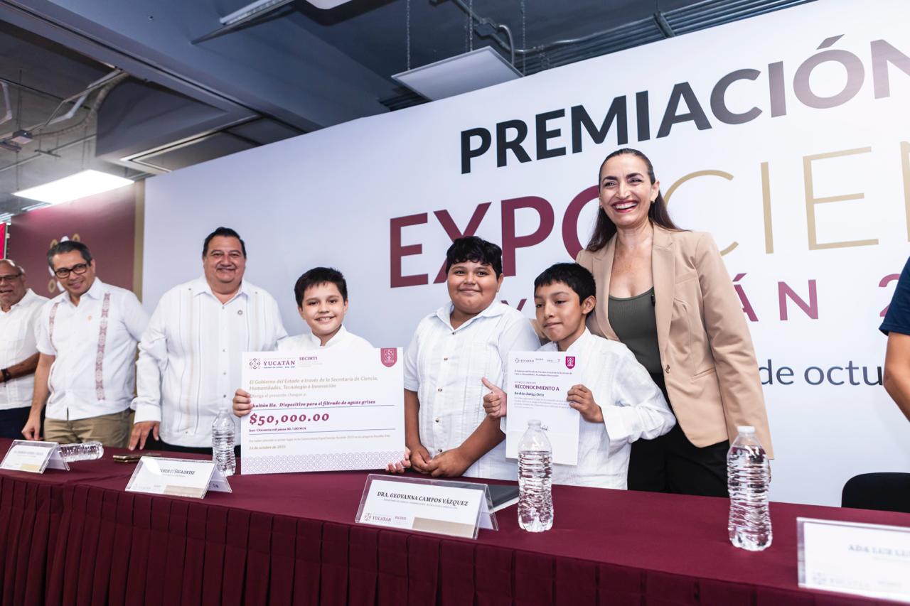 Tomando como inspiración los sistemas hídricos mayas como parte de un proceso orgánico para el filtrado de agua, Ibrahim Zúñiga Ortiz, Adrián Vicente Cámara Cocom y Pablo Isaac Pool Aguilar, de la primaria Valentín Gómez Farías de Oxkutzcab, ganaron el primer lugar de ExpoCiencias Yucatán 2025, en la categoría de Pandilla Kids.