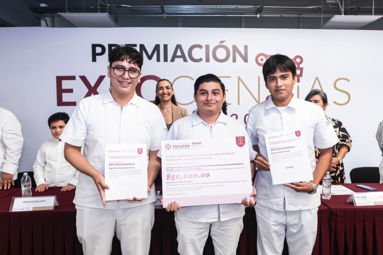 Las y los ganadores del primer lugar recibieron 50 mil pesos en efectivo, mientras que los segundos obtuvieron 30 mil pesos. Eventos como éste reafirman el compromiso del Gobierno del Estado con la educación científica y la innovación, como motores del crecimiento y la transformación de Yucatán hacia una sociedad más preparada, equitativa y con visión de futuro.