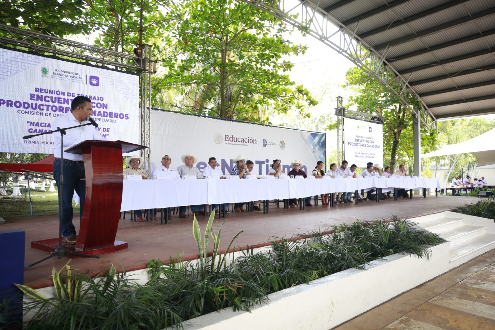 Ante productores locales, autoridades estatales y municipales y cientos de alumnos del Instituto Tecnológico y del Colegio de Bachilleres de Tizimín, hoy se llevó a cabo la tercera reunión de trabajo de la Comisión Permanente de Desarrollo Agropecuario del Congreso Estatal hacia una nueva ley de ganadería de Yucatán.