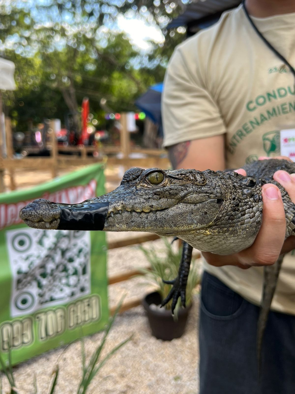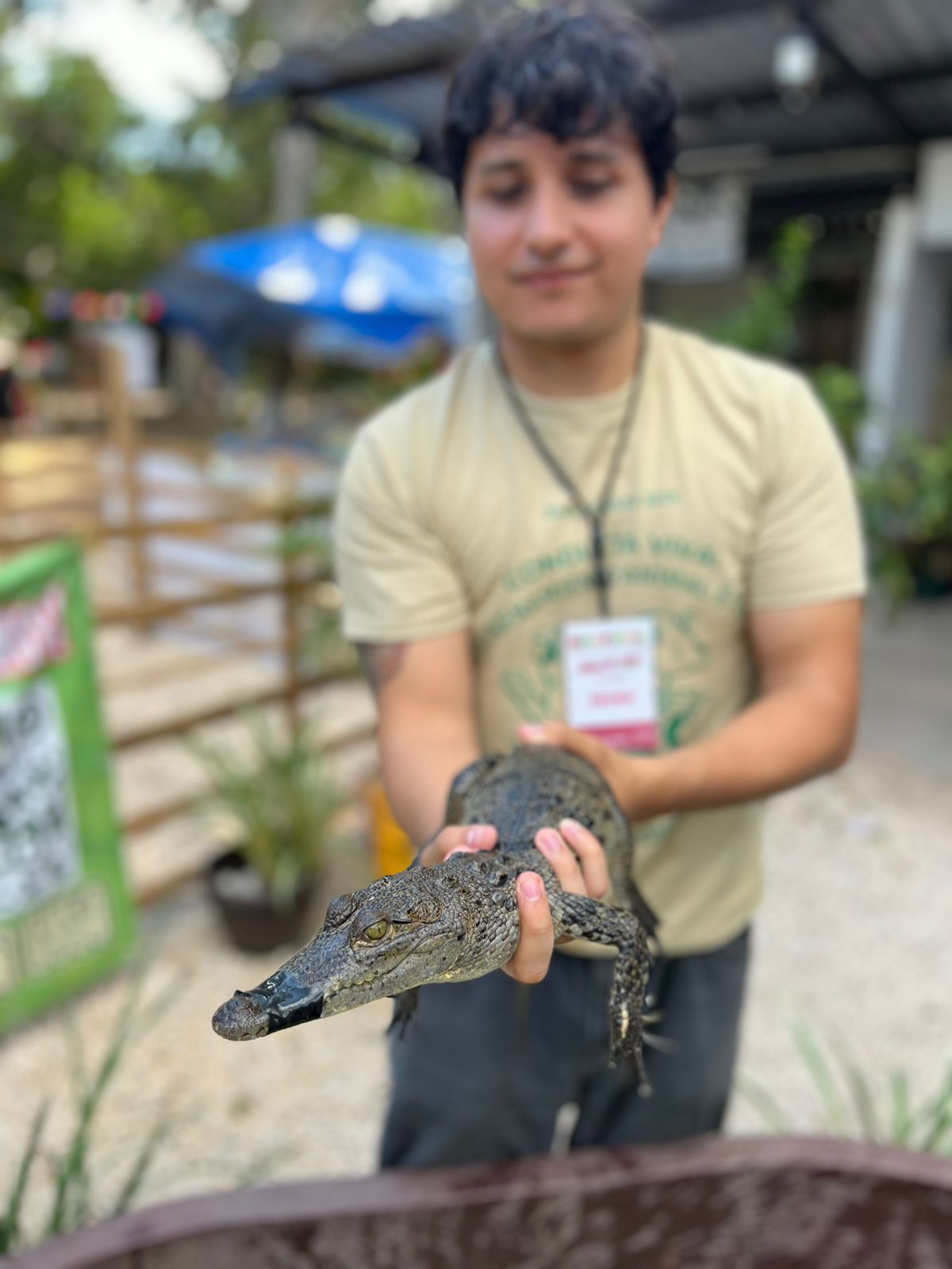 Al entrar, la mirada se detiene en la Granja de Cocodrilos Itzamkanac, resguardada por técnicos atentos. Los visitantes observan con asombro a los cocodrilos moreletti, emblemas de los humedales peninsulares. Los más valientes se acercan para tocar a los ejemplares juveniles, siguiendo protocolos estrictos, mientras aprenden sobre la cría y la reproducción de esta especie protegida.