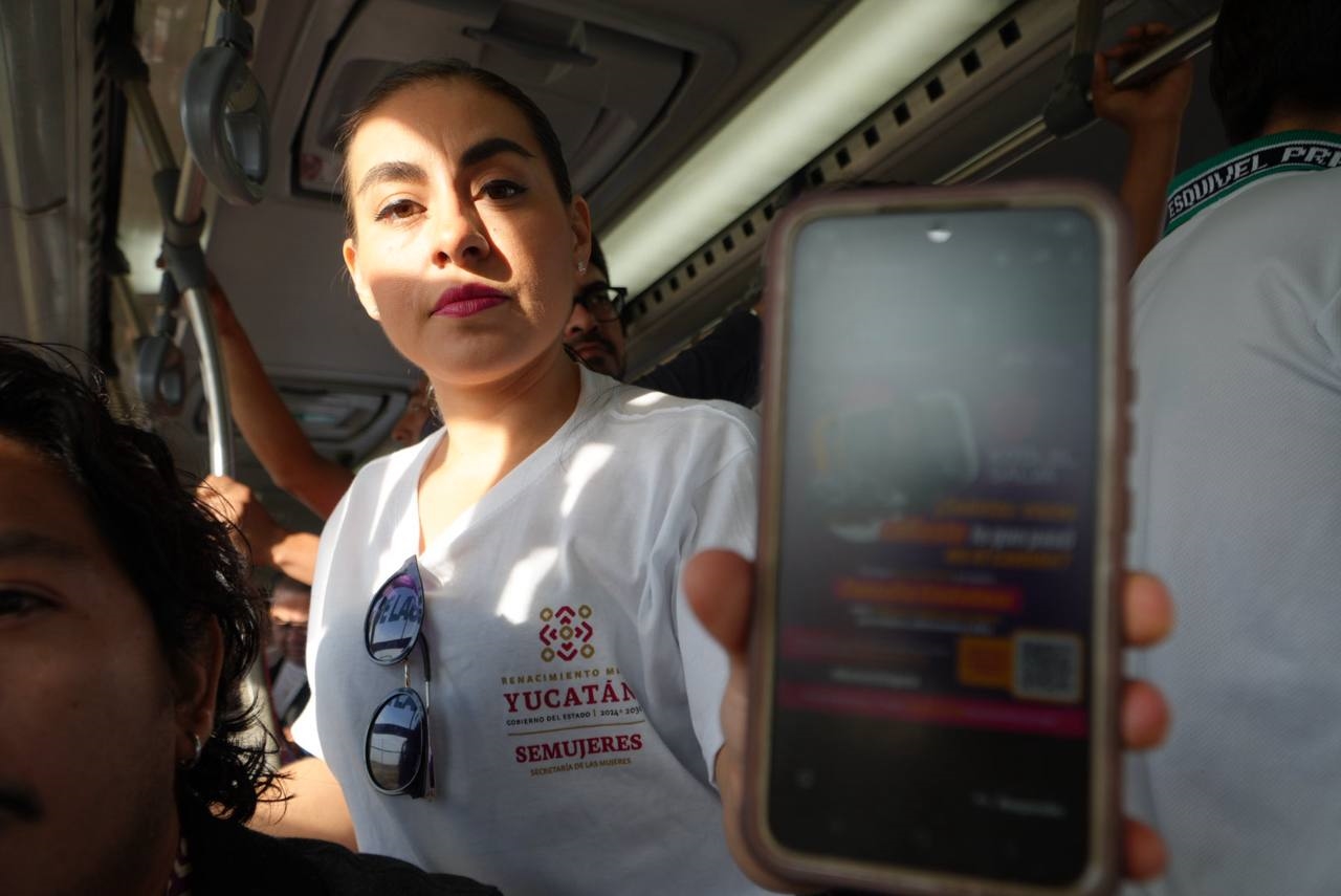 La jornada de este día inició en el Cetram Umán, donde las funcionarias abordaron unidades del Circuito Rojo para informar a las usuarias sobre la consulta y la forma de participar desde sus teléfonos celulares.
