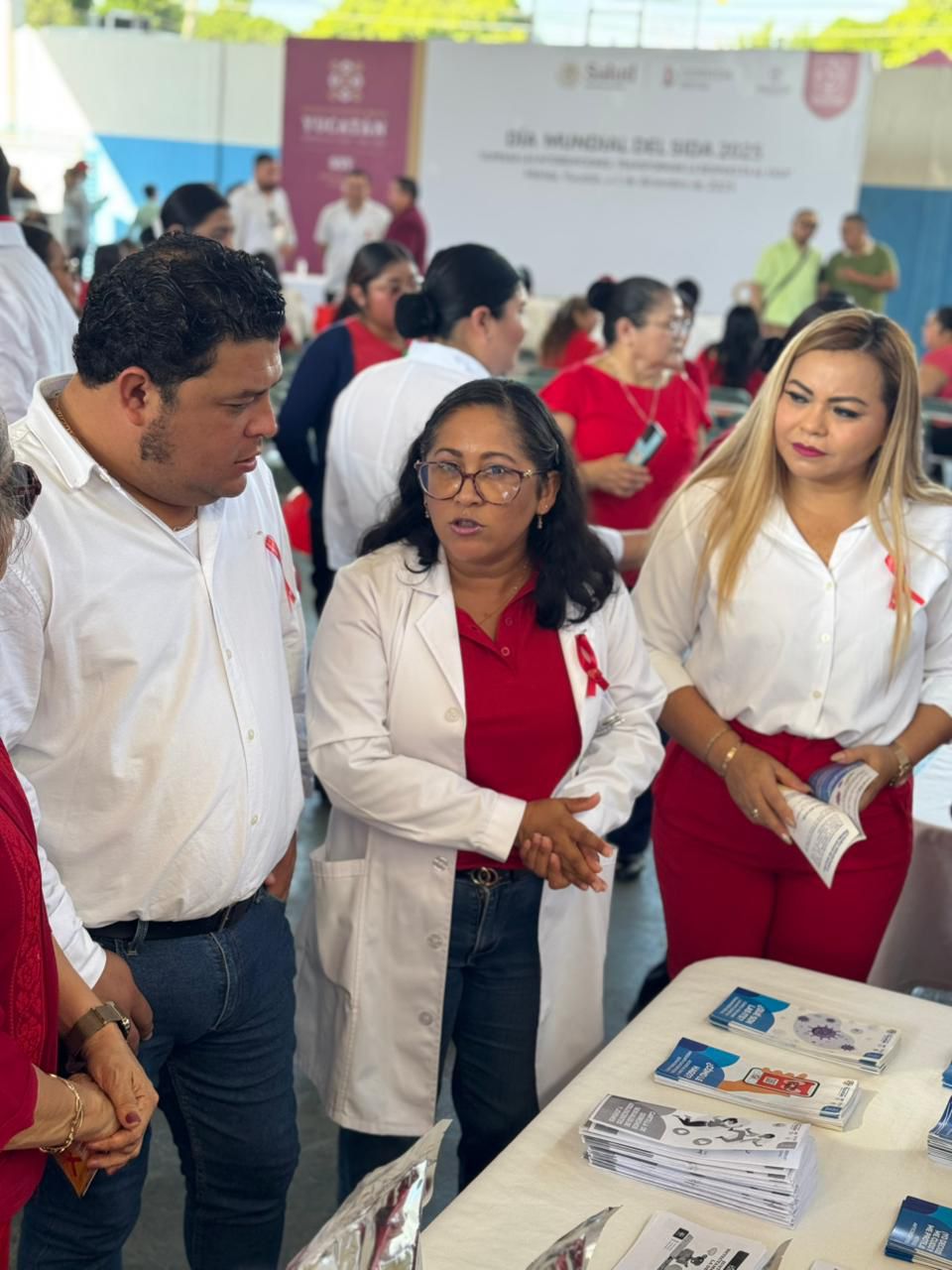 Programa de VIH en Yucatán de la Secretaría de Salud, Dulce Cruz Lavadores; el director de Salud del Ayuntamiento de Kanasín, José Rodríguez Gamboa; el responsable del Centro de Salud en Kanasín, Jorge Ismael Ayora Sosa; y, la directora del Centro de Salud de San José en Kanasín, Claudia Ramos Farjat.
