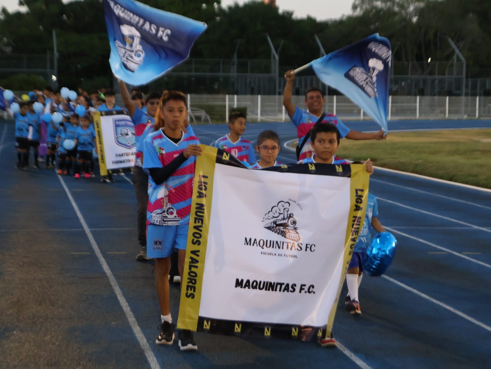La edición 18 de la Liga Nuevos Valores de Fútbol se inauguró el pasado lunes en el estadio “Salvador Alvarado” con la presencia de 200 equipos y casi 2 mil 500 participantes que toman parte en este circuito que se jugará hasta el mes de junio en las instalaciones del Nido Águila y en el Campo de La Hacienda, ambas en la comisaría de Chichí Suárez en las categorías baby fut, microbios, infantil menor, niños héroes, infantil mayor, juvenil menor, juvenil mayor, sub18, primaria, secundaria y preparatoria.