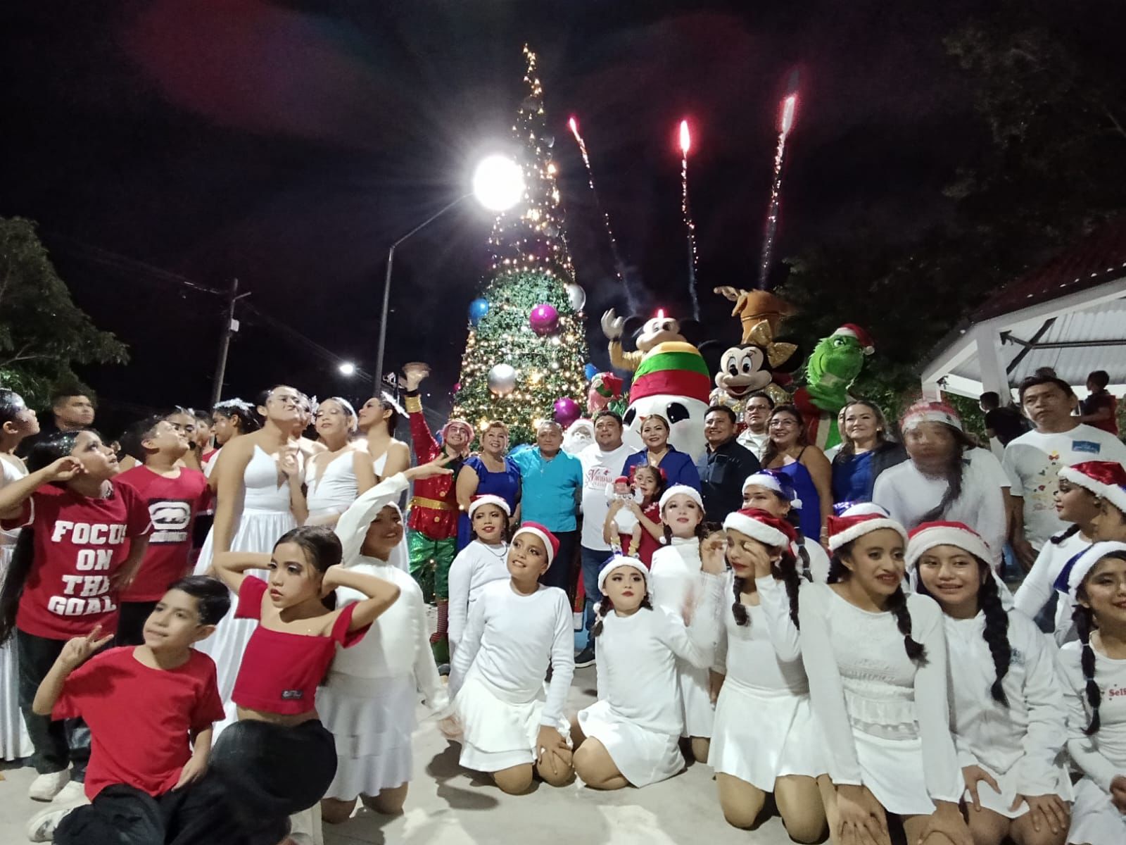 Inician los festejos por la Navidad en Kanasín con el encendido de los árboles navideños de las comisarías de San Antonio Tehuitz y Teya