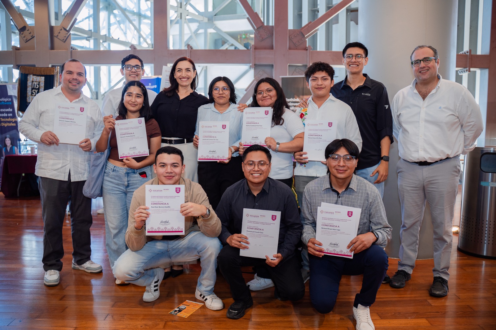 “A las y los estudiantes que tuvieron esta oportunidad de participar en el Programa de Movilidad Internacional 2025, les recordamos que forman parte integral de este Renacimiento Maya; caminamos de la mano con ustedes y queremos que continúen caminando de la mano de esta Secretaría”, declaró, acompañada del secretario de Economía y Trabajo, Ermilo Barrera Novelo.