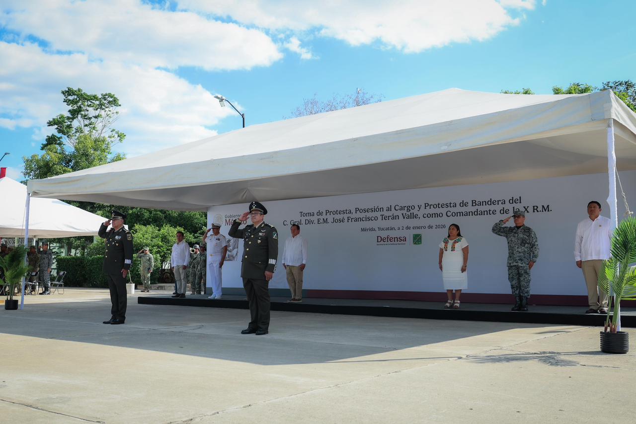 El Gobernador Joaquín Díaz Mena asistió como invitado de honor a la toma de protesta del general de División de Estado Mayor, José Francisco Terán Valle, como nuevo comandante de la Décima Región Militar, con jurisdicción en Yucatán, Campeche y Quintana Roo.