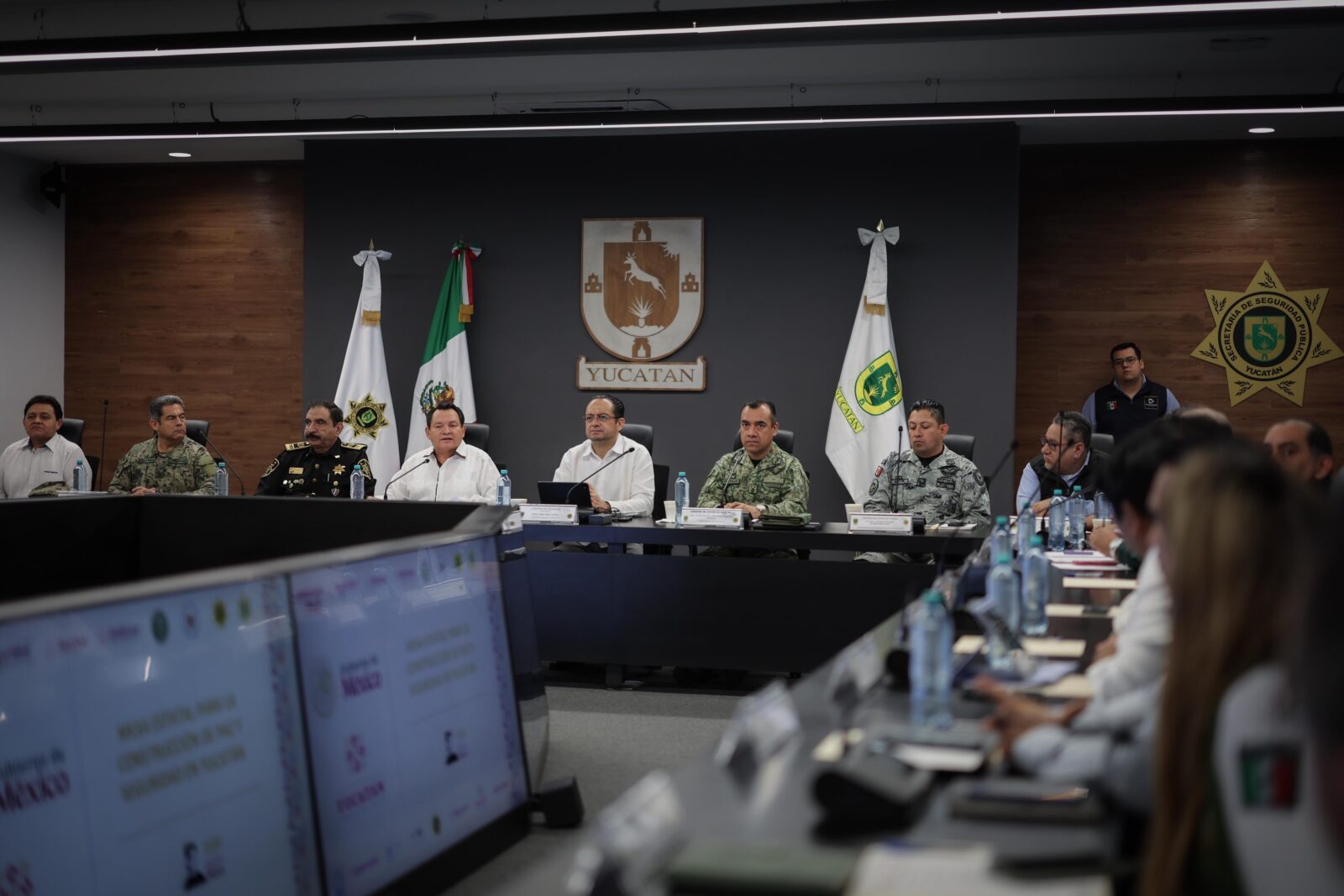 Participaron en esta sesión el contraalmirante del Cuerpo General Diplomado de Estado Mayor, Víctor Omar Mendoza Aguilar, jefe de Estado Mayor y representante de la 9ª Zona Naval; el general de brigada de Estado Mayor, Juan Manuel Mendoza Portillo, comandante de la 32ª Zona Militar; el fiscal general del Estado, Juan Manuel León León; el teniente coronel de la Guardia Nacional, Rolando Meza Puga, comandante del 28º Batallón y representante de la Guardia Nacional en Yucatán; y el fiscal federal en el Estado, Manuel David Magdón Flores.