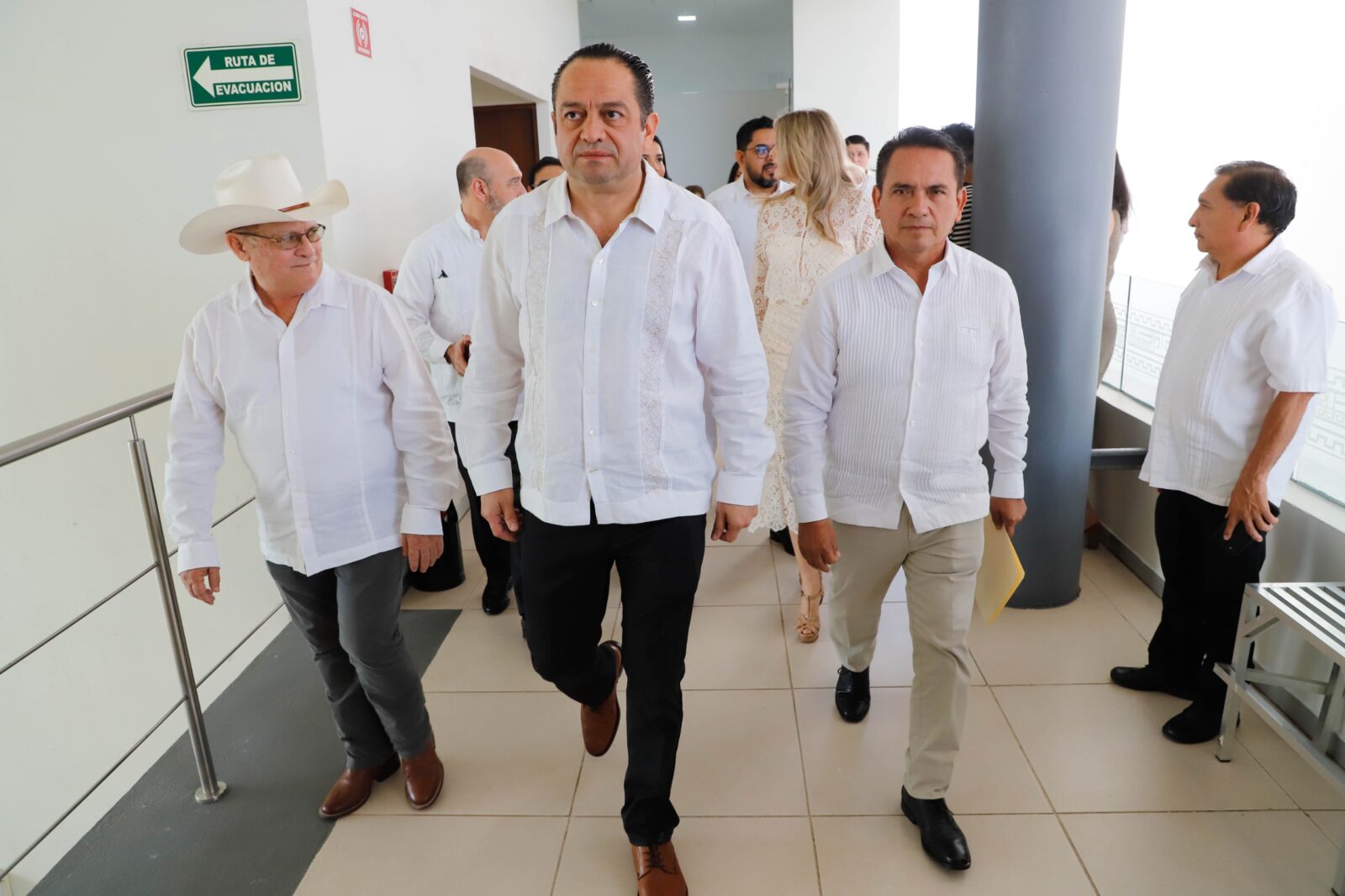 Acompañado del presidente de la Junta de Gobierno y Coordinación Política, diputado Wilmer Monforte Marfil, las diputadas integrantes de la Diputación Permanente María Esther Magadán Alonzo e Itzel Falla Uribe; así como del Consejero Jurídico, Mtro. Gaspar Alemañy Ortiz y del Secretario Técnico de Planeación de Planeación y Evaluación, Mtro. Luis Hevia Jiménez, el diputado Quintal Medina señaló que el informe será analizado durante la Glosa del mismo, conforme a la norma.