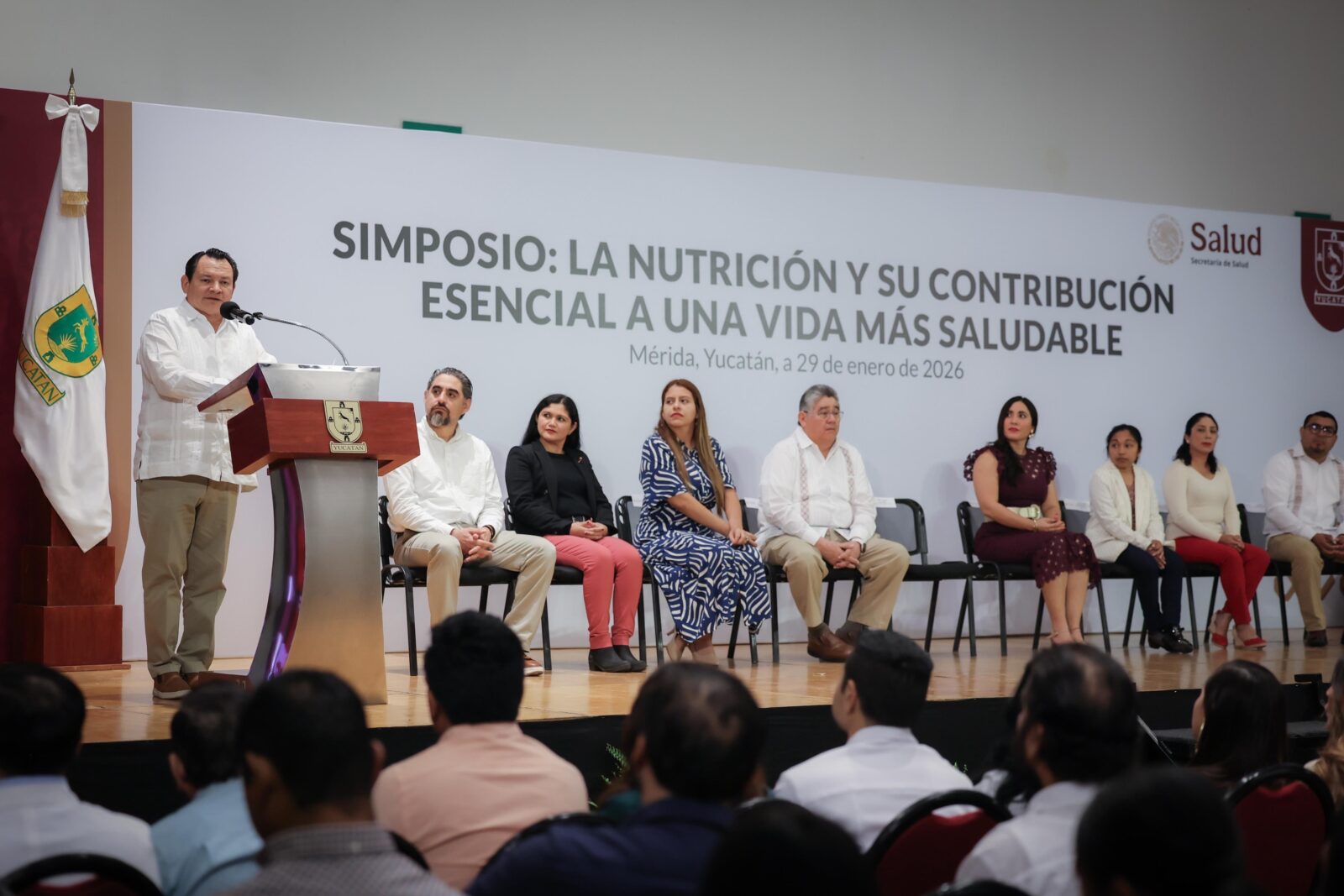 Durante el Simposio “La nutrición y su contribución esencial a una vida más saludable”, el Gobernador Joaquín Díaz Mena expresó su agradecimiento y reconocimiento a las y los nutriólogos por ejercer su labor con conocimiento, compromiso y responsabilidad.