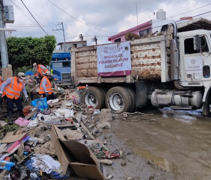 Ya en operación brigada yucateca que auxilia a comunidades afectadas en Veracruz _Las y los brigadistas yucatecos trabajan intensamente en las comunidades...