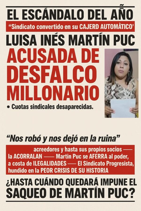 poradmin31 agosto, 2025Socios inconformes la acusan de haber utilizado las cuotas sindicales para su propio beneficio personal y utilizar la cuenta del Sindicato como su...