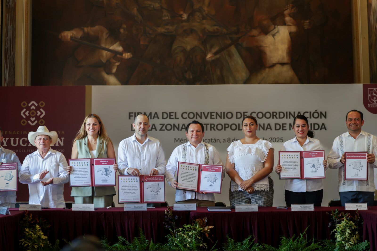 El Gobierno del Estado de Yucatán firmó este viernes un convenio de colaboración con la Secretaría de Desarrollo Agrario, Territorial y Urbano (SEDATU) y los ayuntamientos de los 14 municipios que integran la Zona Metropolitana de Mérida, con el objetivo de atender de forma coordinada los retos del crecimiento y desarrollo urbano de esta región.