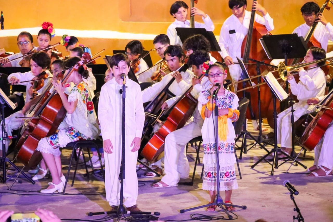 Las blancas voces infantiles de Tonatiuh Hernández Montiel, Victoria Valdez Pasos, Victoria Cruz Vera, William Collí Spalding y Romina Flores Itzá bordaron entre compases y flores cada melodía, como si sembraran estrellas en el pentagrama.