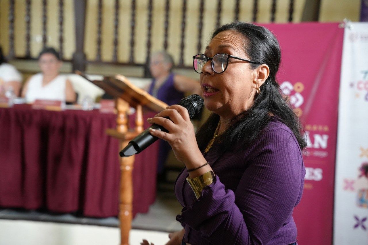 Al encabezar el encuentro, denominado “Caminar la misma senda” en la Pinacoteca “Juan Gamboa Guzmán, la titular de Semujeres, Sisely Burgos Cano, llamó a trabajar de manera conjunta para romper los círculos de violencia y el silencio, y avanzar hacia una sociedad segura y en paz.