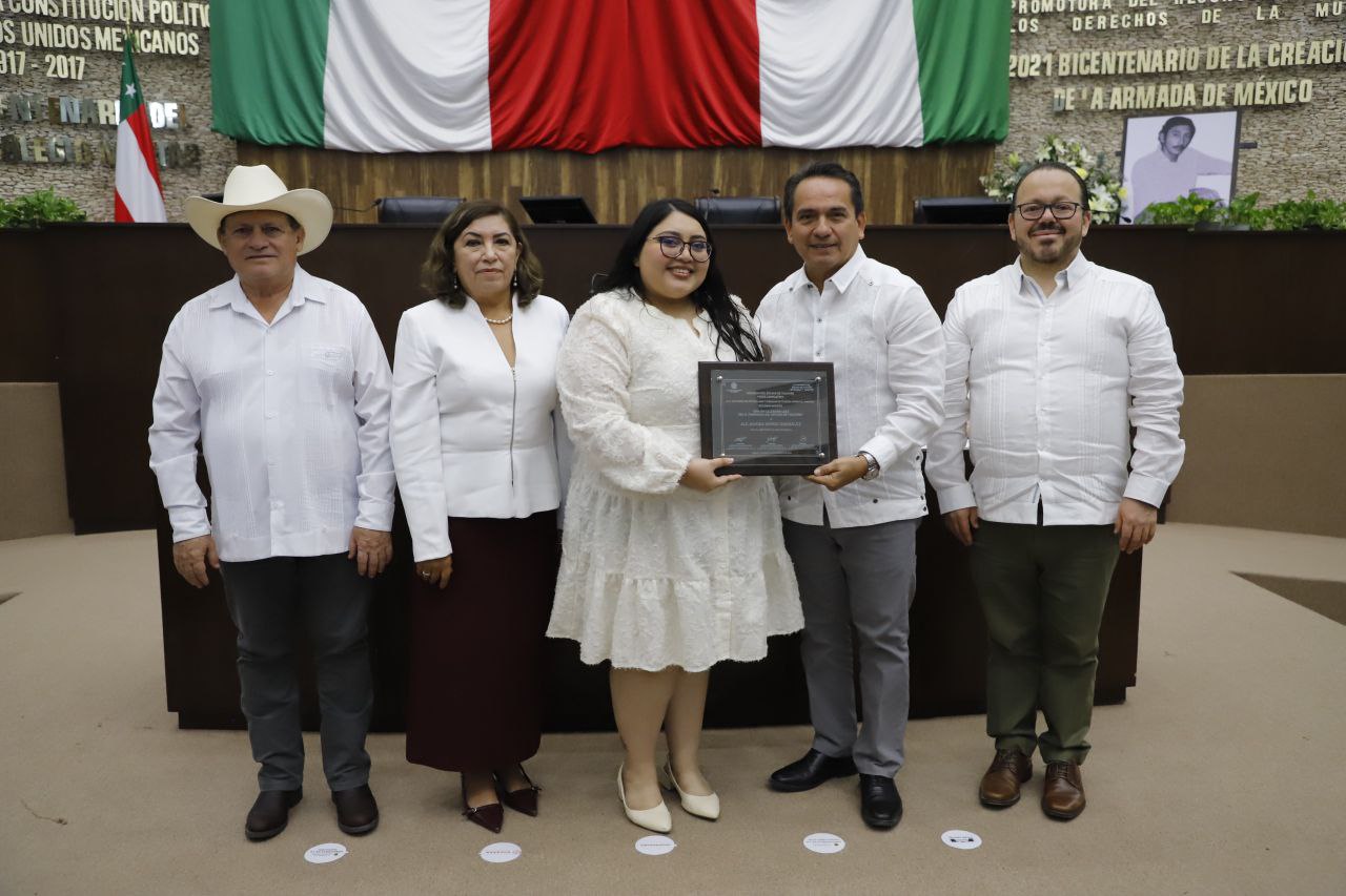 Recibiendo el reconocimiento de manos del presidente de la mesa directiva, diputado Germán Quintal Medina, en el ámbito académico fue distinguida Sofía Eli Morán Mena, cuyo reconocimiento fue recibido por la Sra. Virginia Aguayo Barrera; en el ámbito deportivo, Dalia de Jesús Alcocer Piña, representada por el Sr. Ramón Alcocer; en el cultural, Las Trovadoras del Mayab; en el social, Alejandra Koyoc González; y en innovación y emprendimiento, Ethan Atlán Sabido.