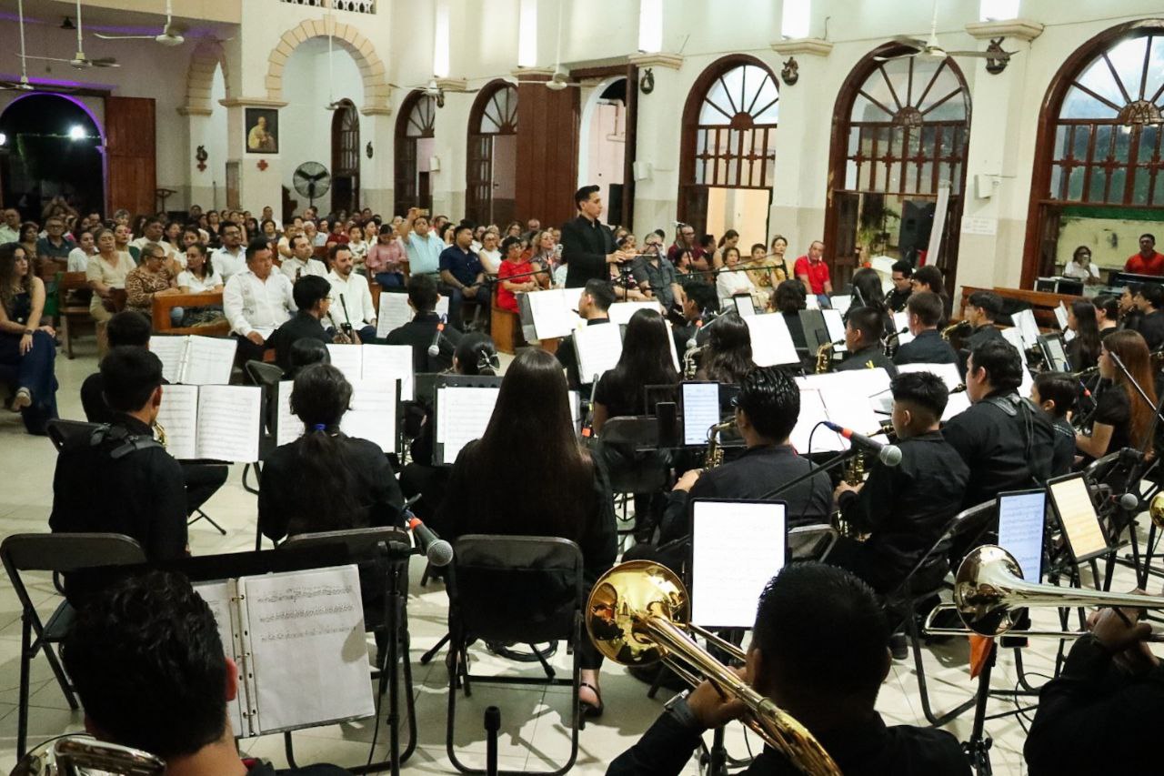 _La Banda Sinfónica Infantil y Juvenil de Tizimín, la primera conformada en esta administración gracias a un acuerdo entre la Sedeculta y el Ayuntamiento de Tizimín, se presentó en la Parroquia de Nuestra Señora de Guadalupe._
