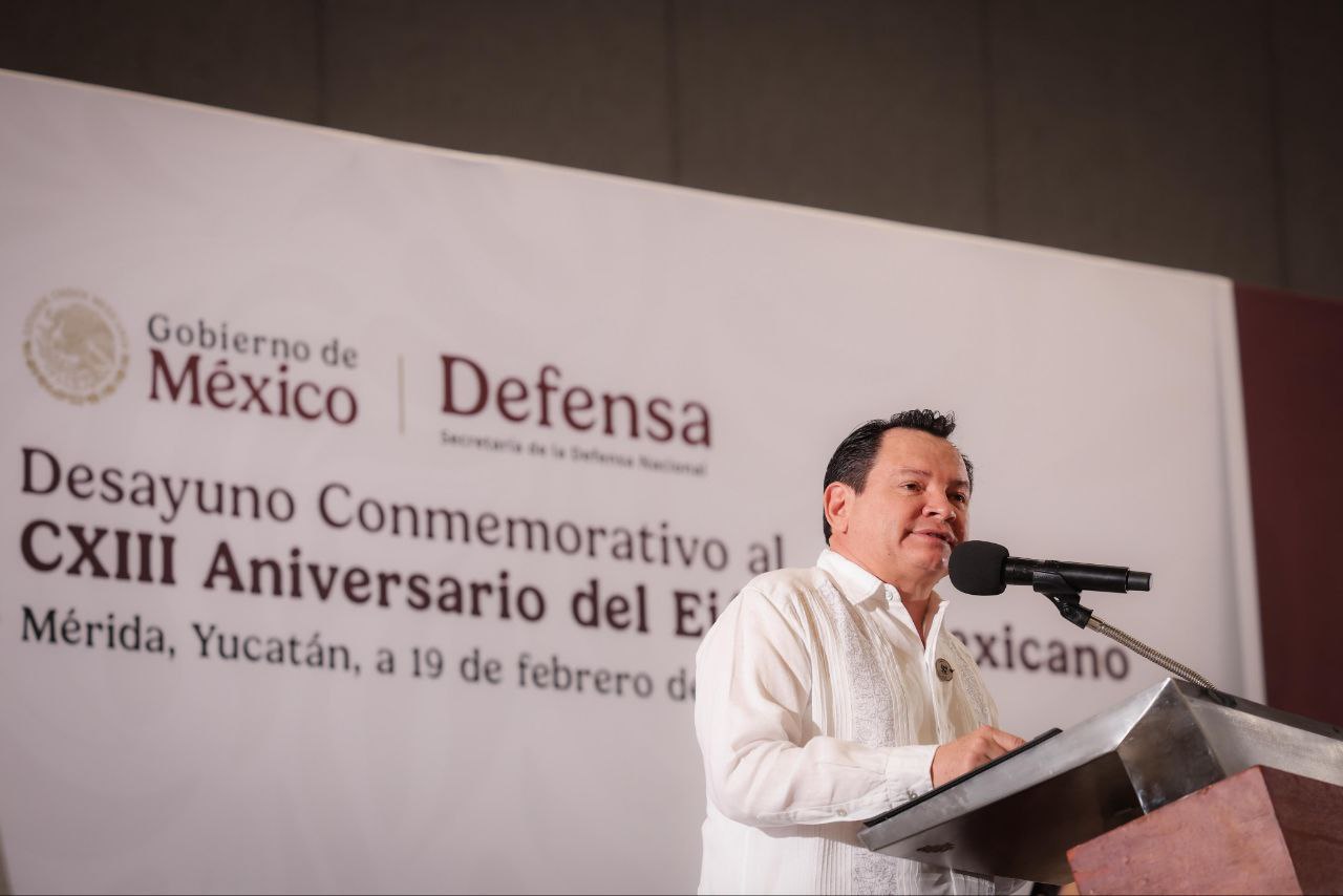 Durante un desayuno conmemorativo realizado en el Centro de Convenciones Yucatán Siglo XXI, el Mandatario destacó que el Ejército es una institución que ha acompañado a México en los momentos decisivos de su historia, por lo que hoy se conmemoran 113 años de lealtad al país y de compromiso con las y los mexicanos.