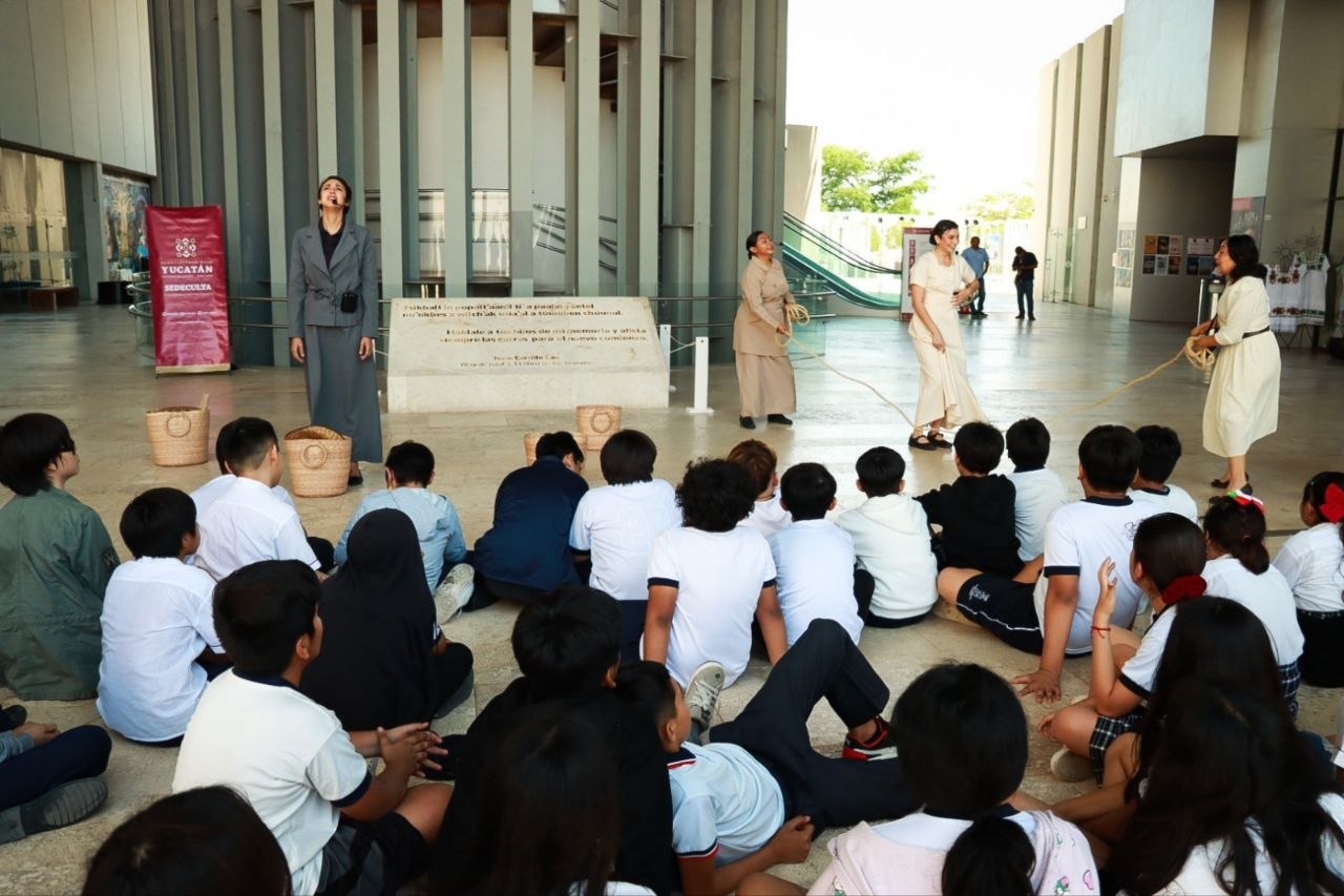 La visita de las niñas y los niños incluyó un recorrido por la Sala Permanente del Gran Museo del Mundo Maya, espacio que, con actividades como esta, fortalece el diálogo entre la historia, el arte y el patrimonio vivo con las expresiones culturales contemporáneas.