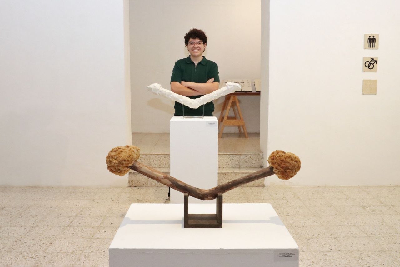 Durante el acto, Gonzalo Dávila explicó que “Dos mil rodillas cuartearon la losa” forma parte de su proceso de titulación de la Licenciatura en Artes Visuales de la UNAY y detalló que es la primera vez que todas las piezas de esta propuesta se presentan en conjunto en un mismo espacio.
