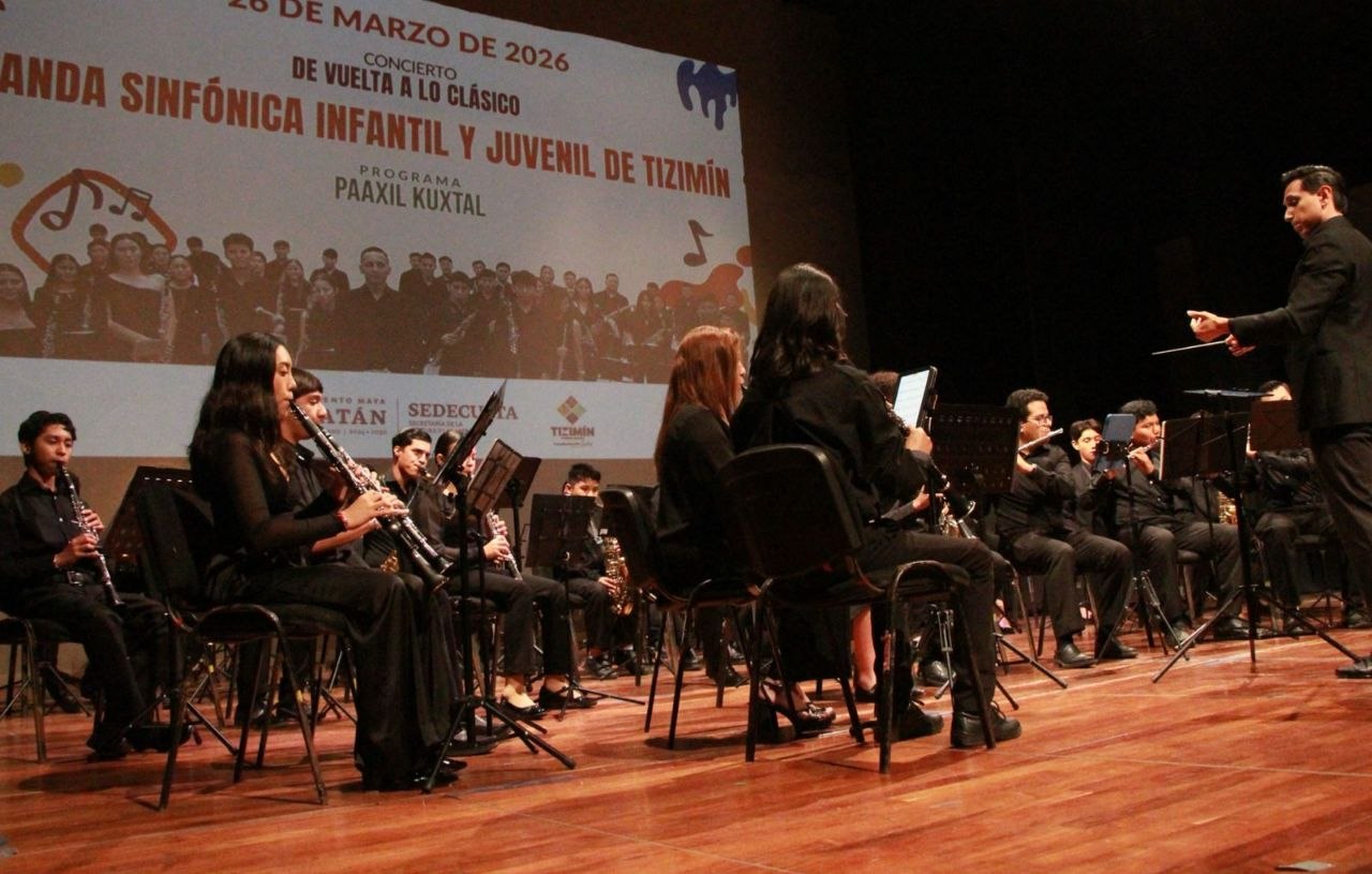 _La Banda Sinfónica Infantil y Juvenil de Tizimín recibió una ovación de pie en el Teatro José María Iturralde Traconis, mientras “Bravas Muchachas” marcó el cierre del programa Artes Escénicas en la Escuela._
